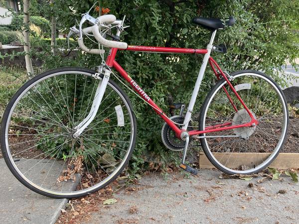 Huffy TechtraLite 12-sped bicycle, steel frame, 32” tall to top of crossbar. Needs new inner tubes. $35.