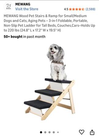 Looking sell this brand new set of dog stairs. Got it for our dog and decided to go another direction. Opened, but otherwise brand new unused. Paid nearly 80.00 for it on Amazon a few months back,...