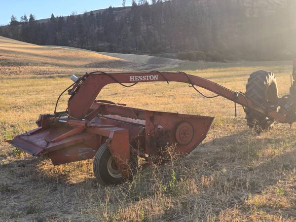 Field ready Hesston 1010 pull swather, I have put many new parts on it during this last season including a new sickle bar. Its full width steel on rubber conditioner makes excellent fast drying hay. Comes with some spare two piece sickle guards. Please call as I do not get texts. Would be interested in trading for a bale wagon, wheel rake, a small square baler, or a tedder.
