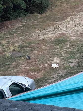 There are some domesticated meat rabbit who've been roaming about the neighborhood the last year or two and one of them decided to use our house as a nursery.