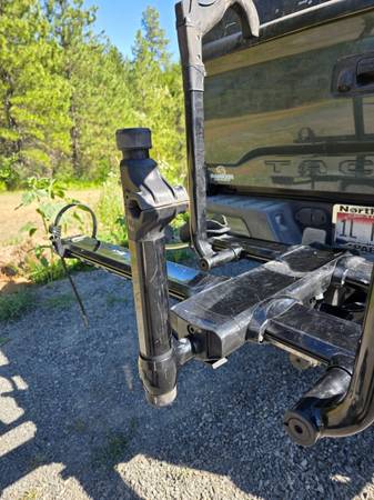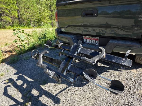 This is a heavy duty Electric bike rack which holds two 60lb bicycles. The cool integrated bike repair stand makes field maintenance and bike repairs easy and convenient. The rack fits 2 inch receivers and tilts for access to your hatch or tailgate. This is almost new (Only used 3 or 4 times) and retails for a LOT more! I can deliver or you can pick it up. Call or text John: 2zero8-596 six552.