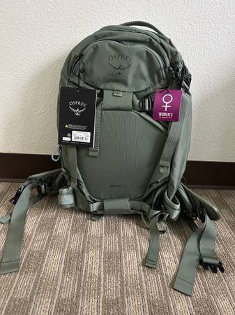 Brand new tags still on, never used. Color is Pine Leaf Green and is Women's specific. Can be used for carrying Skis or Snowboard. Many zippers and side pockets, goggle pocket and helmet carry.