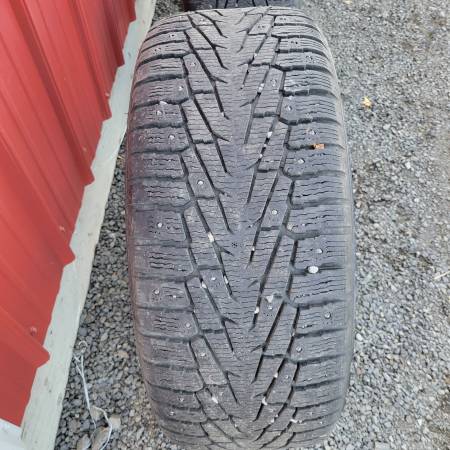 285/50 R 20 Nokieo, Russian ice/snow studded tires, wheels, hubcaps and lug nuts. These are original 6 lug wheels off a 2006 Suburban. The tires are directional tread and provide the best traction of any tire I have used either commercially or personally. I can't tell the percentage of tread, but the have very good tread depth.