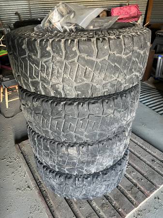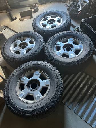 Set of 04+ Ford F-150 factory aluminum 17”wheels and 285/70R17 tires. Lug Pattern is 6×5.31″ (6×135mm). 2 tires have ok tread the other 2 not great (see pics) but would definitely run all next summer or make good set of winter wheels. Come with all 4 center caps and lug nuts. Asking $200 no trades. Call or text only I don’t check email. Thanks.