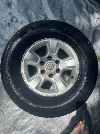 16'' Toyota wheels from a 2006 Tundra with around 180k miles. Wheels are 6 lug in the 6x139.7mm bolt pattern. Tires are bald but the wheels are in ok condition. Missing one hub cap, I have found some on ebay though. TPMS were working last time I had them on. Call or Text six1zero 401 4onesix6
