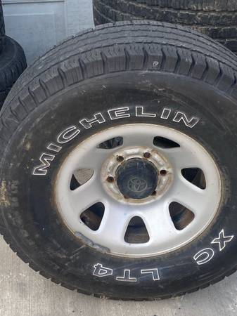 I have a set of four, all terrain tires. They came off of a tundra, but fit on my second gen taco. Should fit some 4Runners, that would have to be looked up. They r 6 lug, balanced, and have abt a summer season and a half left.